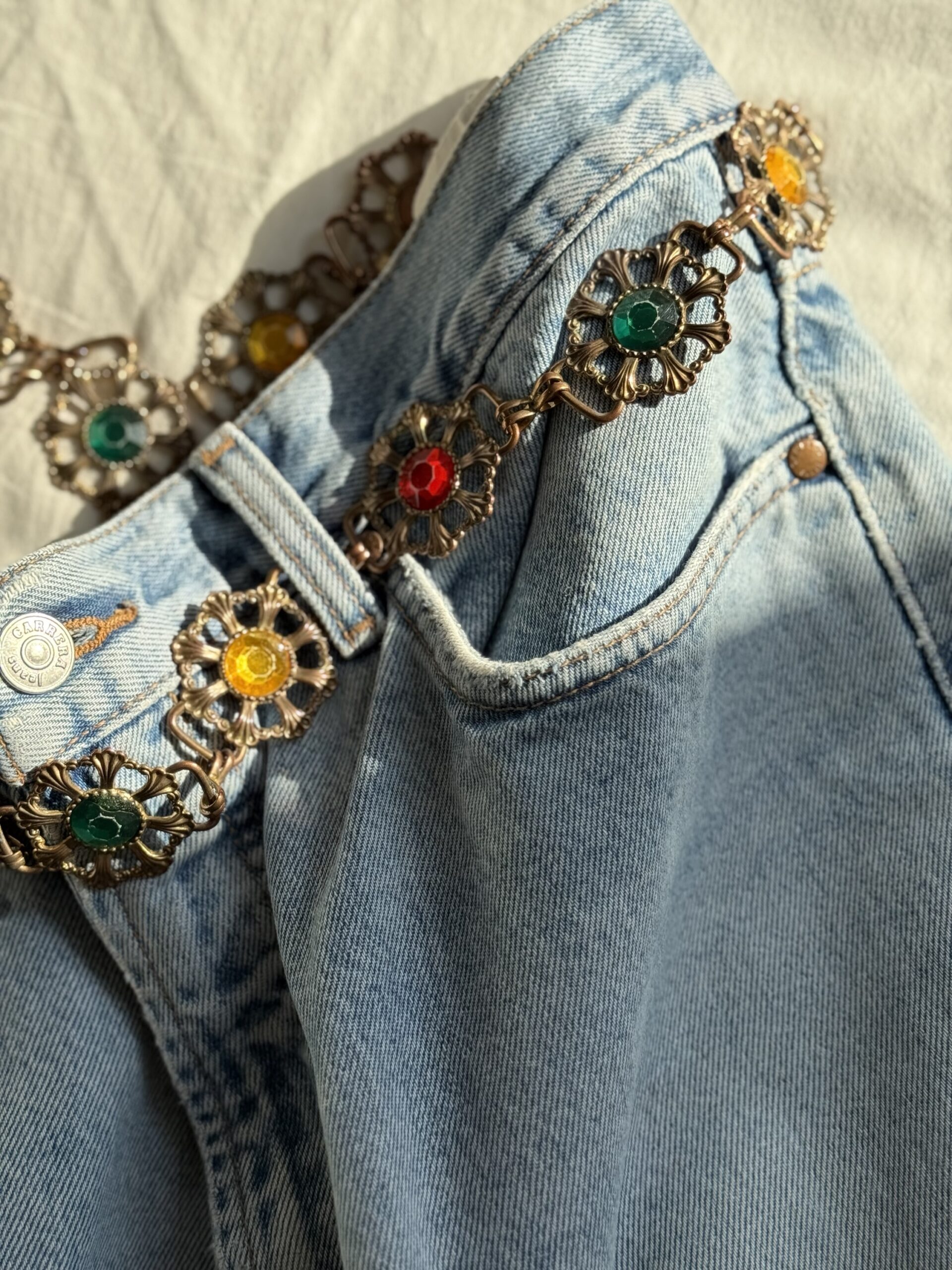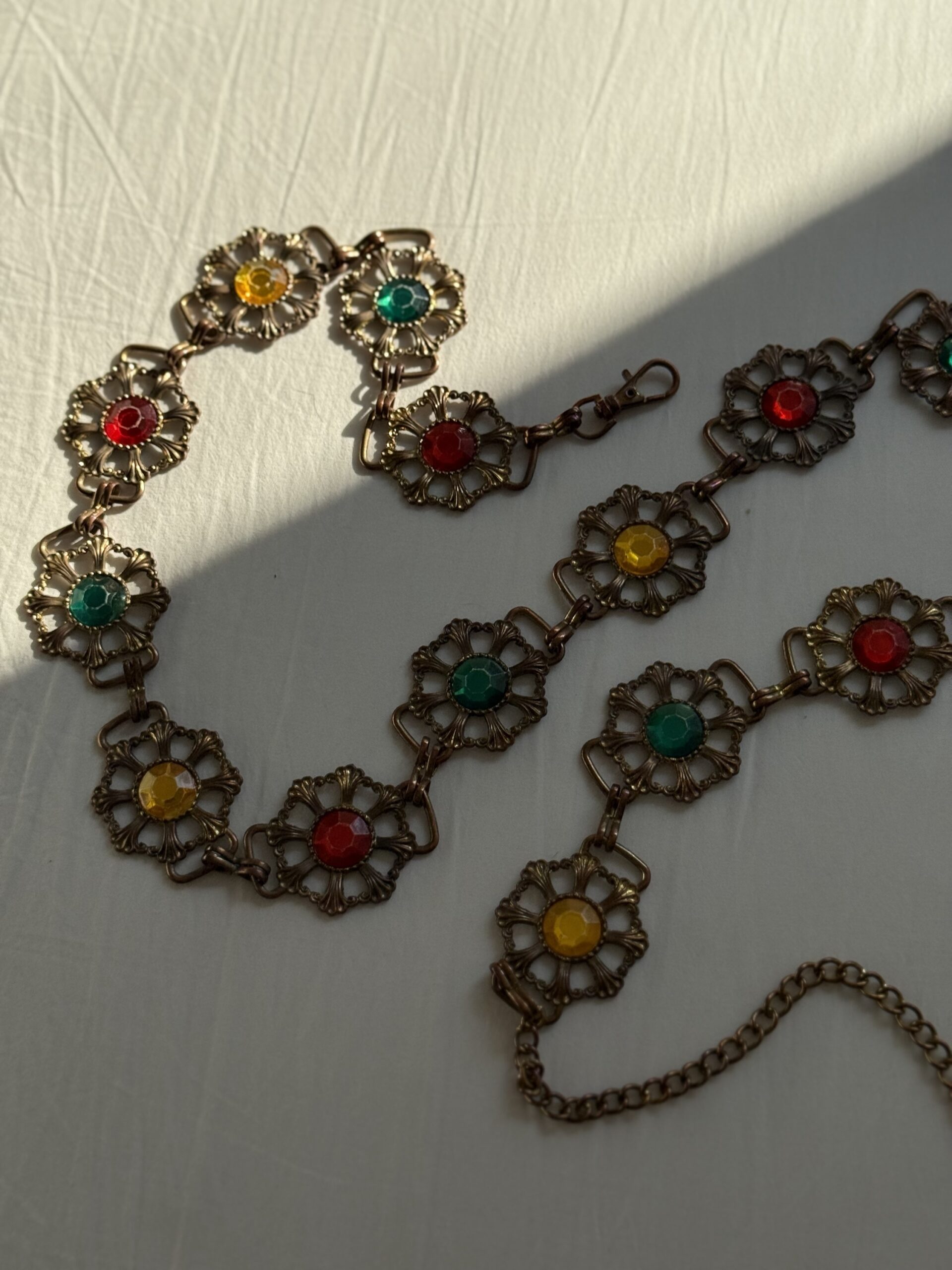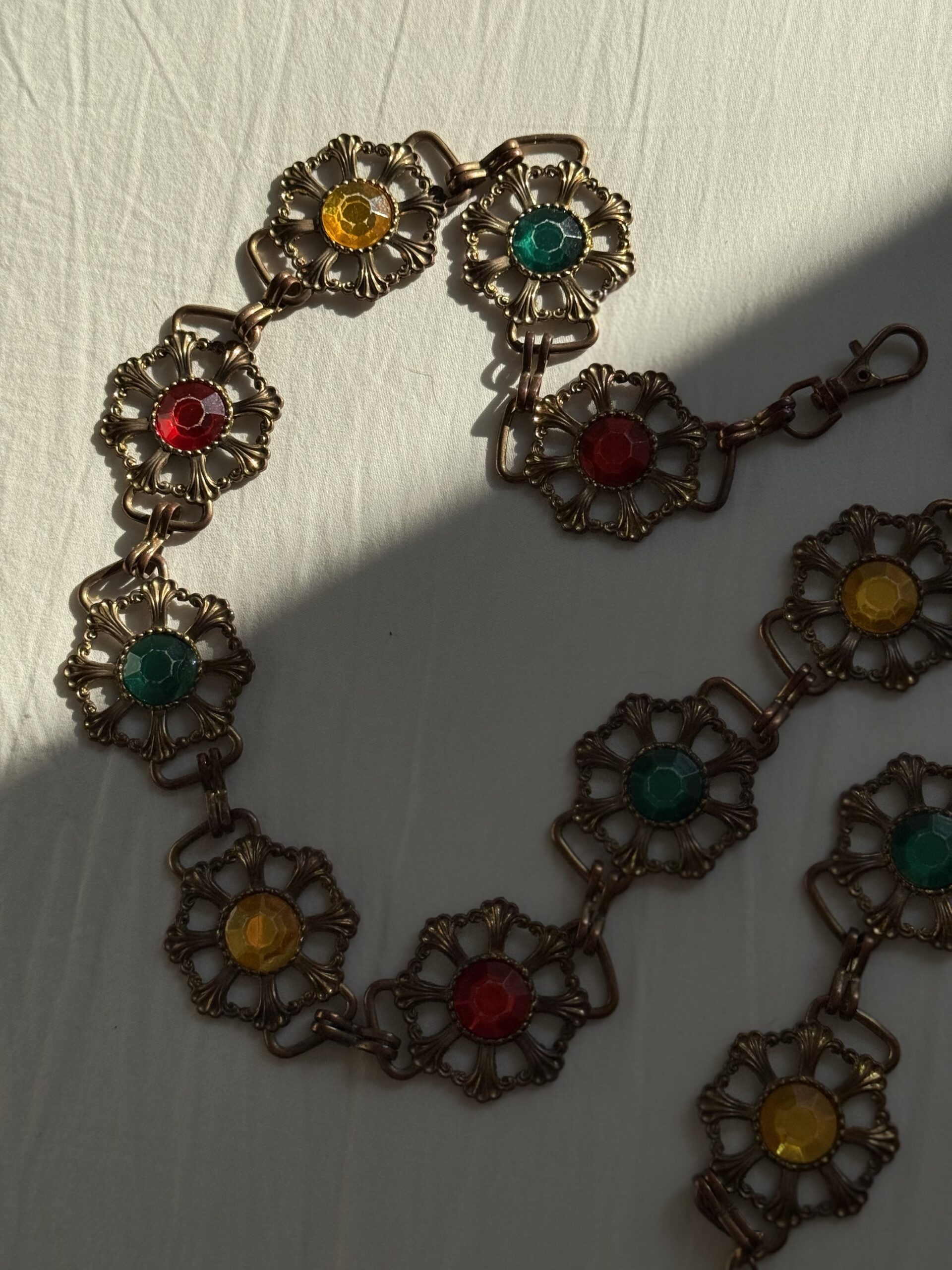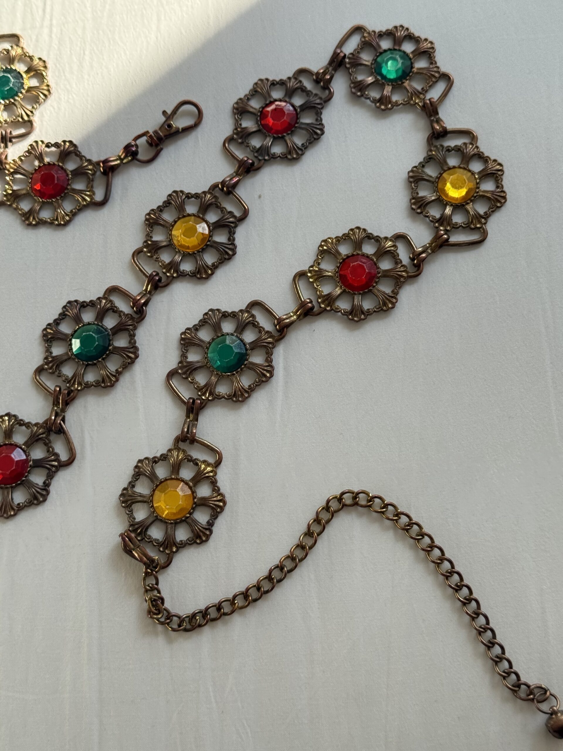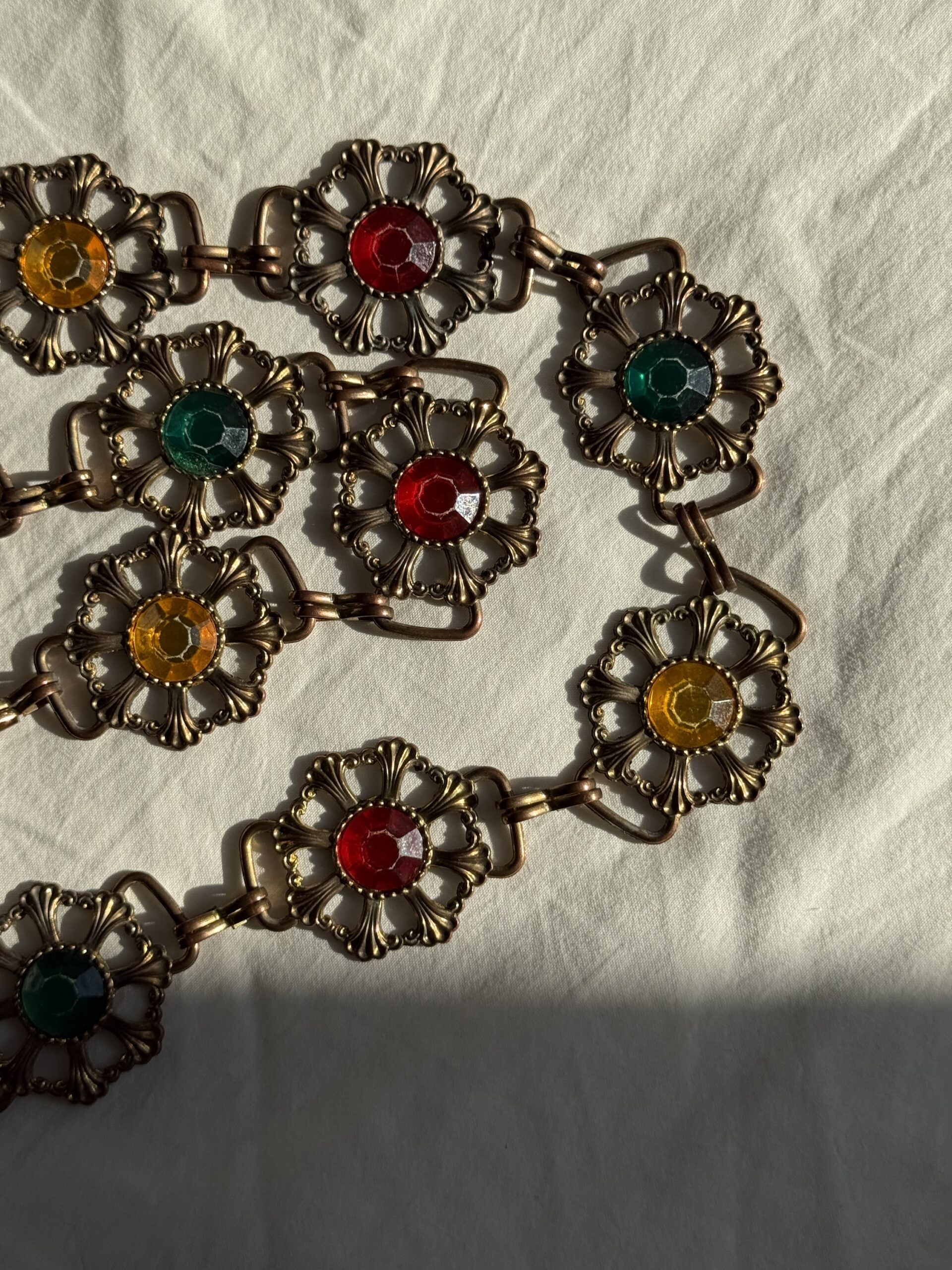 Antyk – pasek wykonany z mosiądzu, zdobiony kolorowymi cyrkoniami