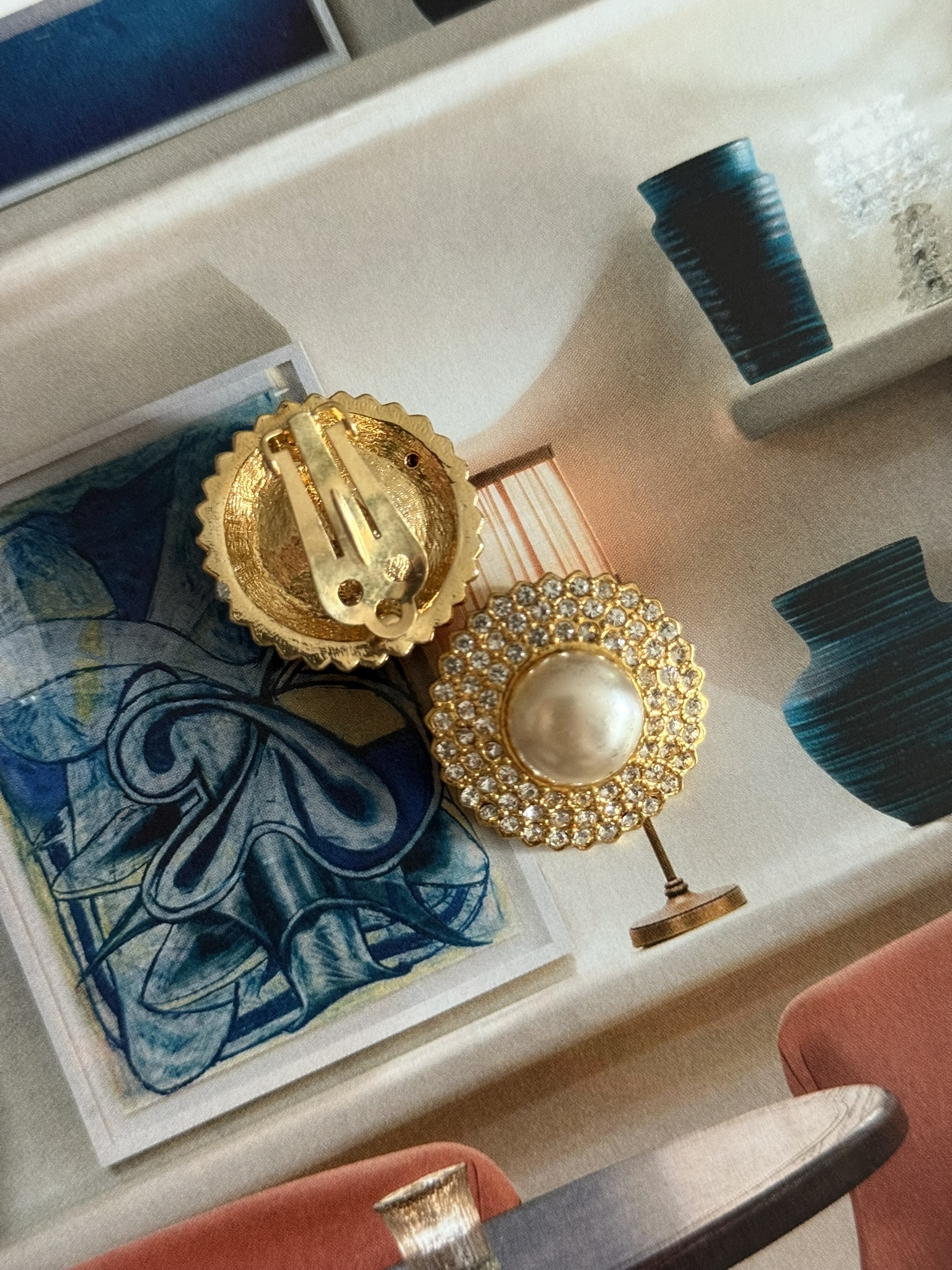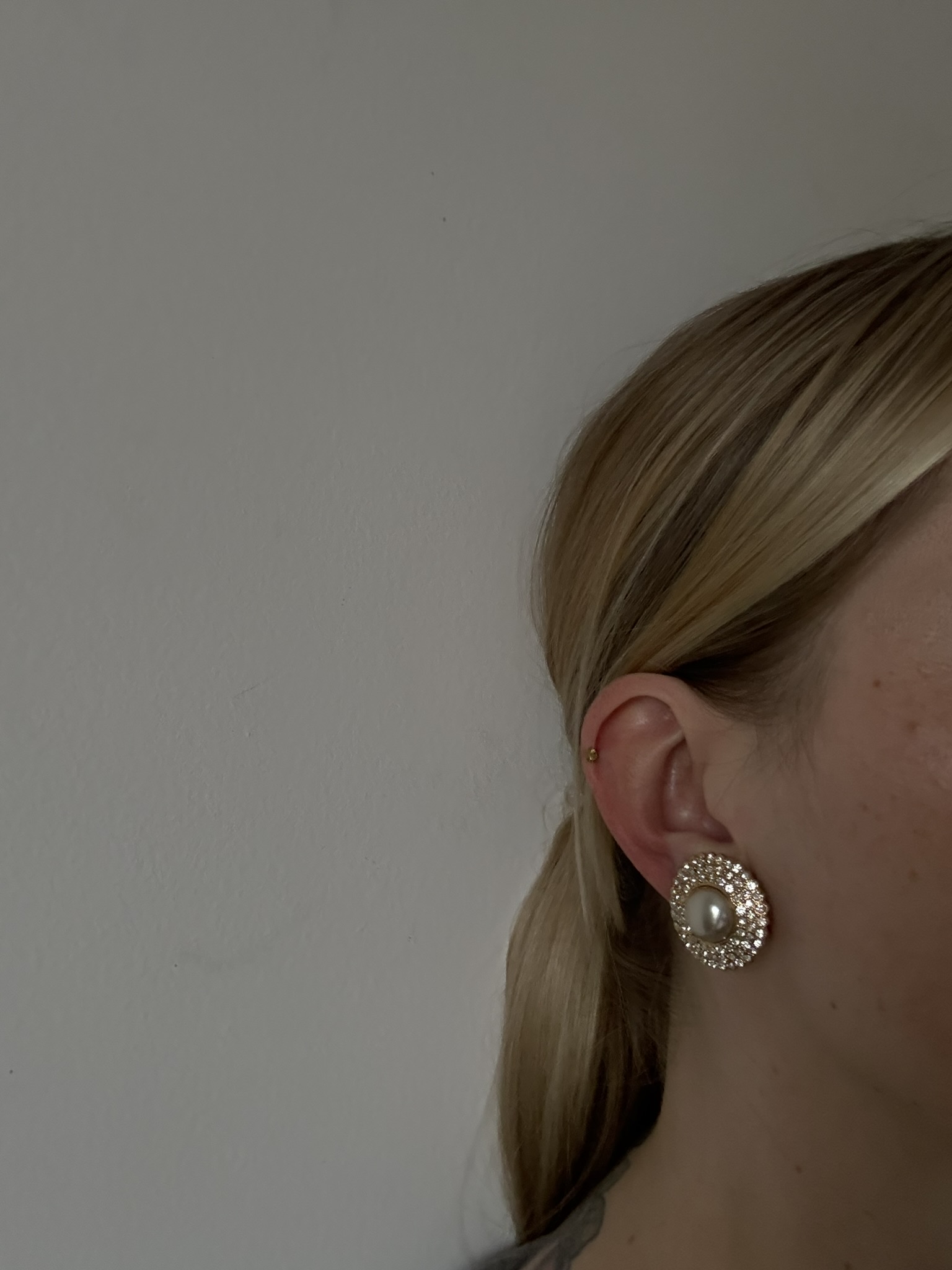 Klipsy w kolorze złotym z cyrkoniami i perłą
