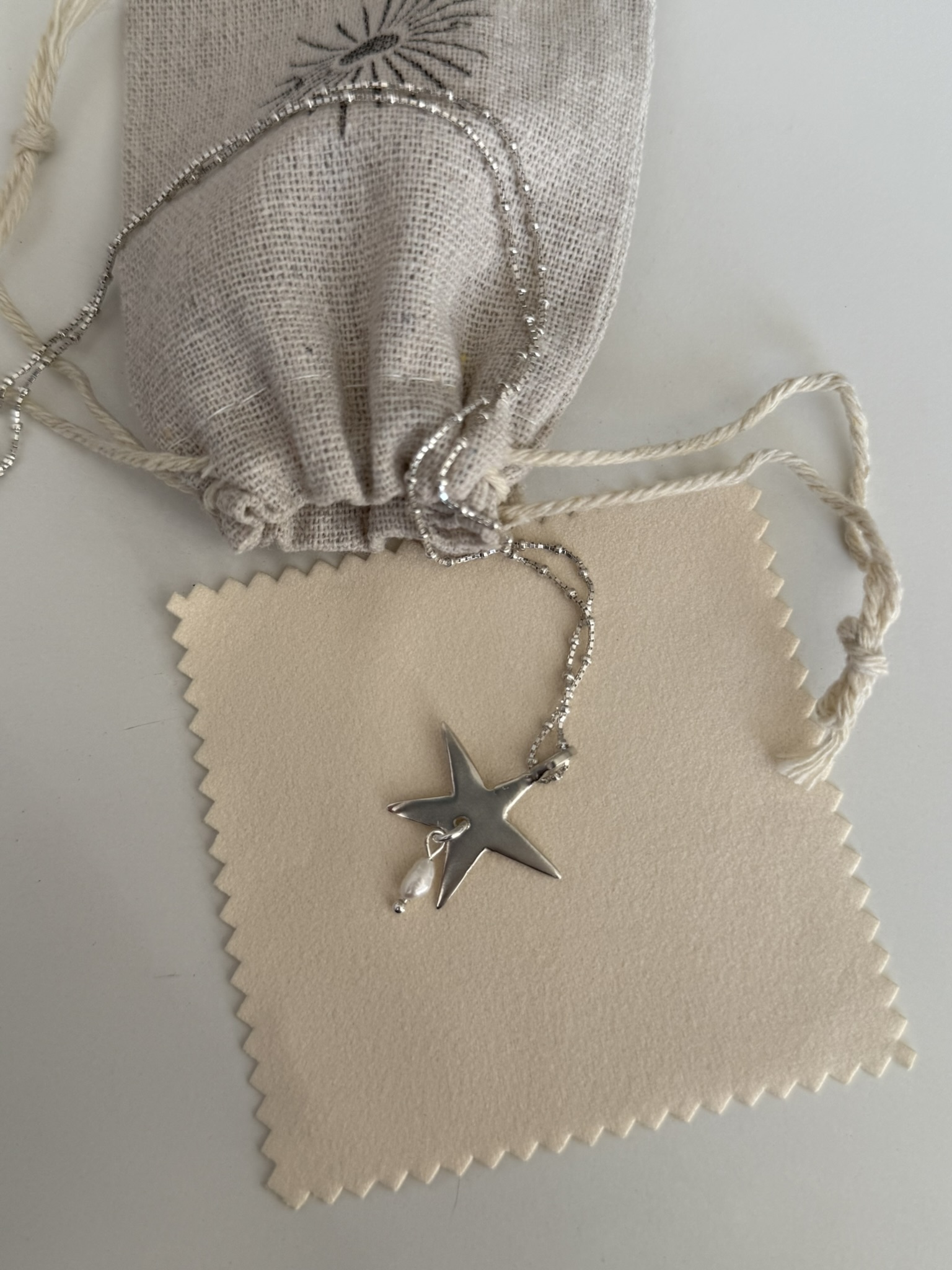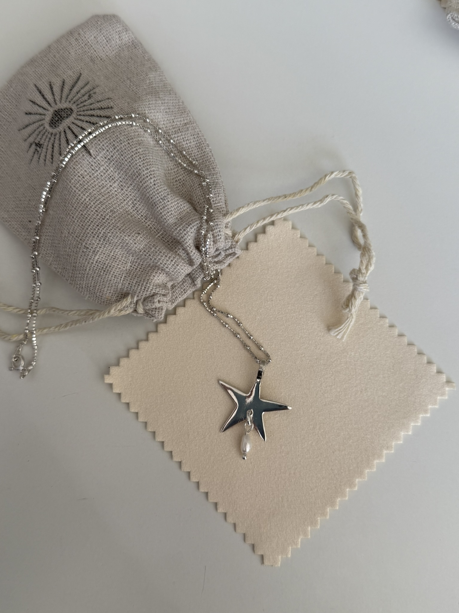 Ręcznie wykonany naszyjnik ze srebra z zawieszką w formie gwiazdy.