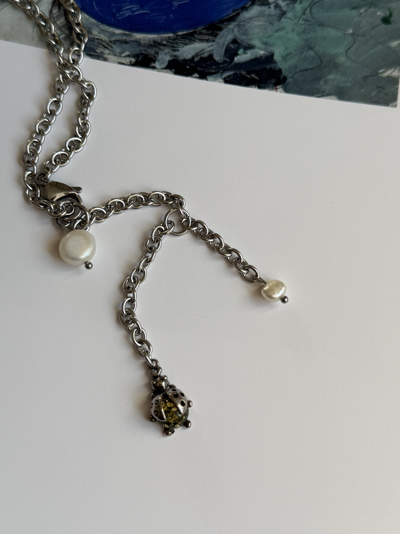 Zawieszka vintage biedronka srebro 925/ bursztyn
