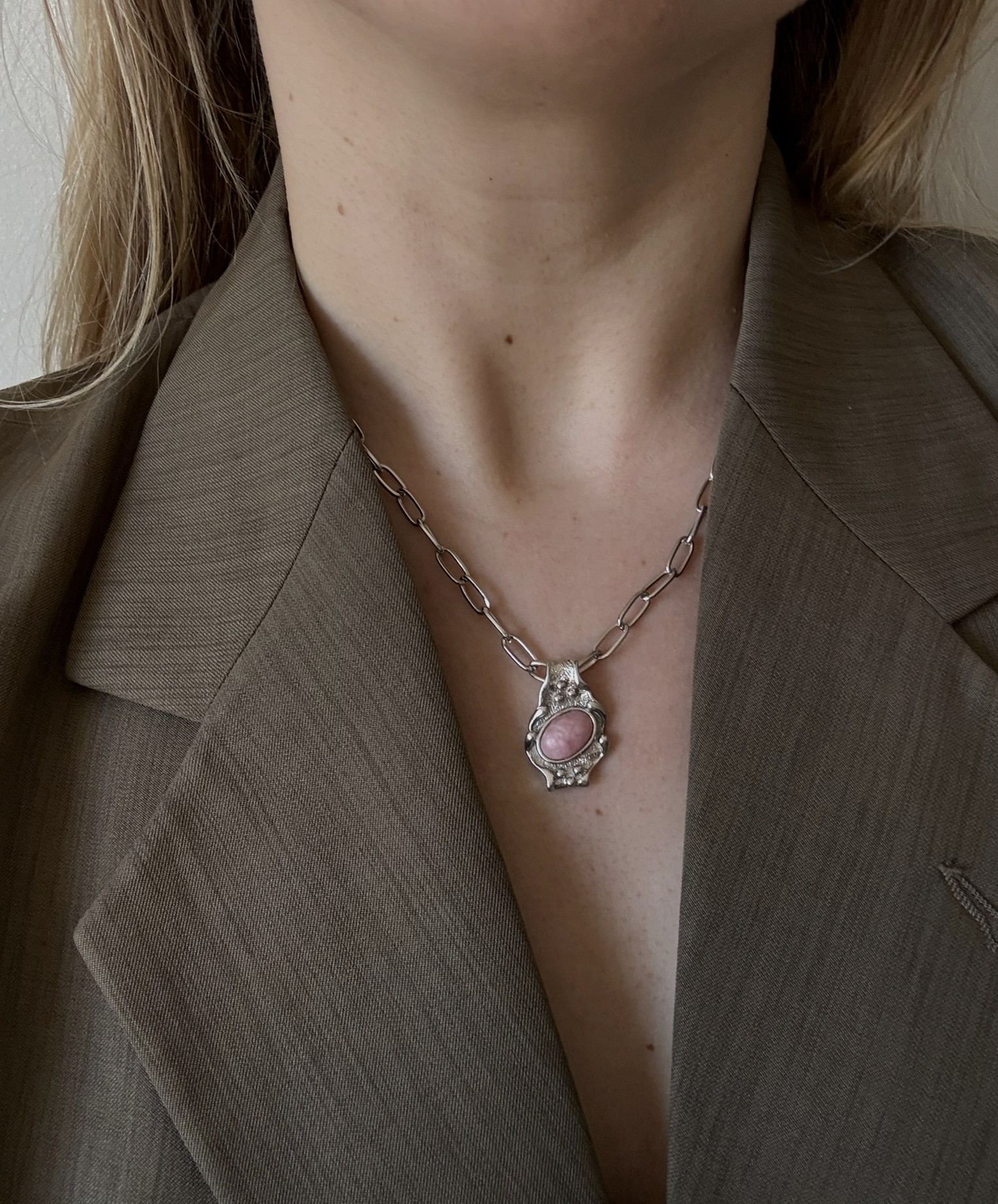 kamień naturalny najprawdopodobniej kwarc różowy lub rodochrozyt.