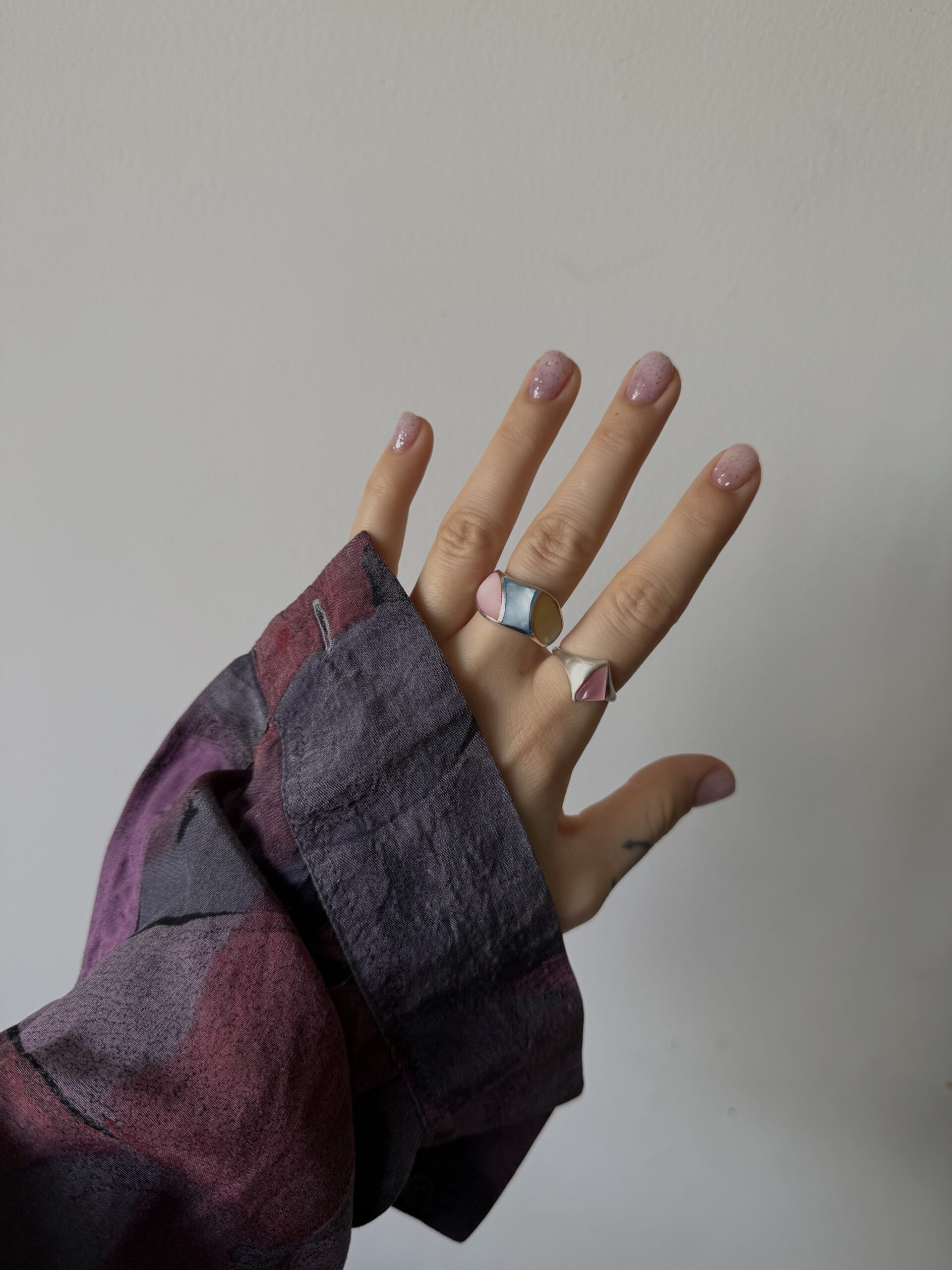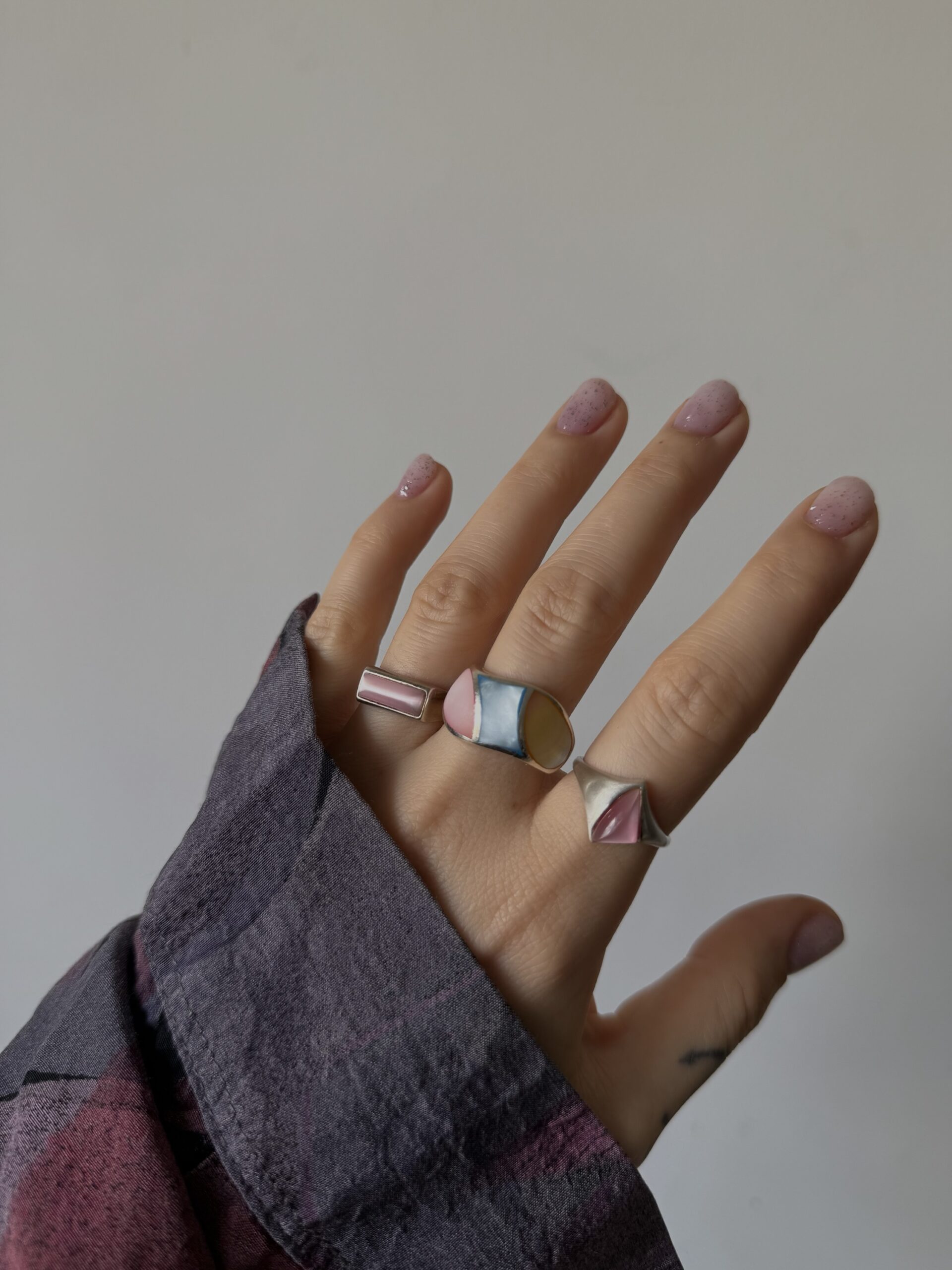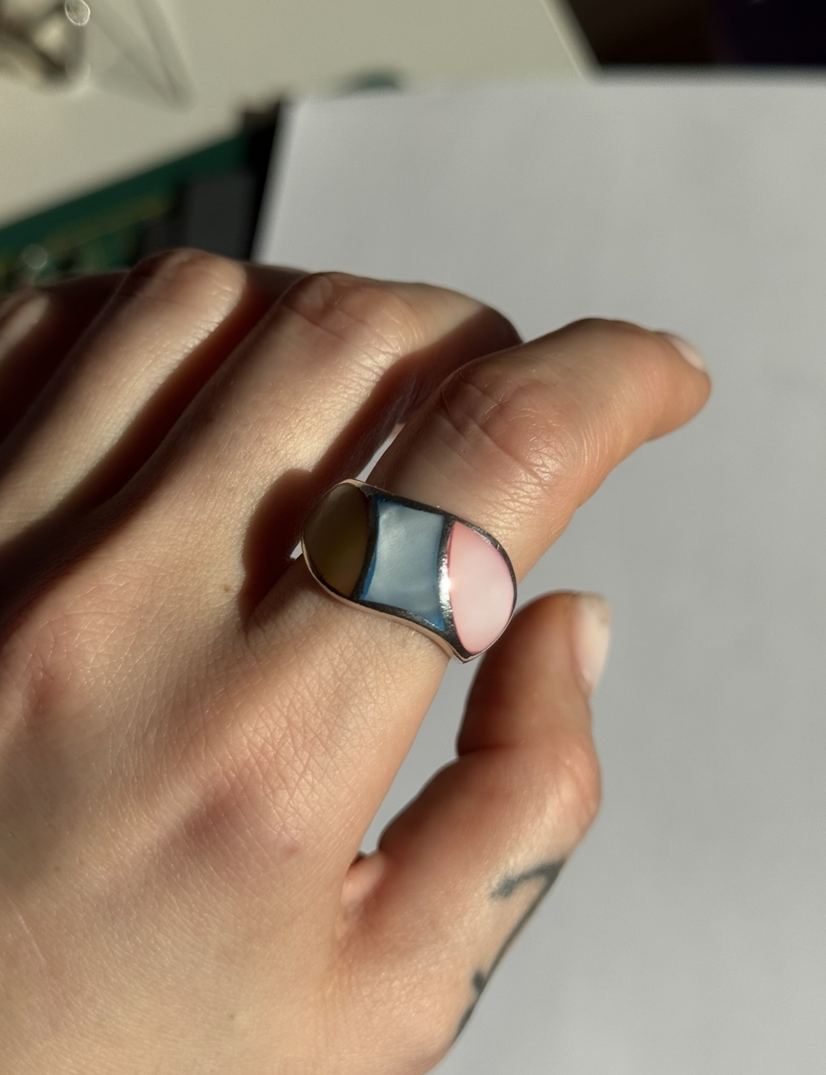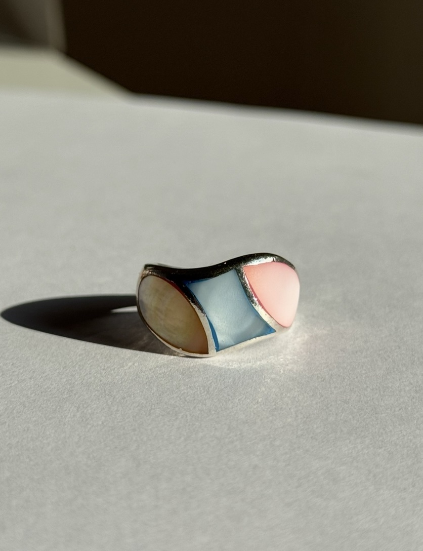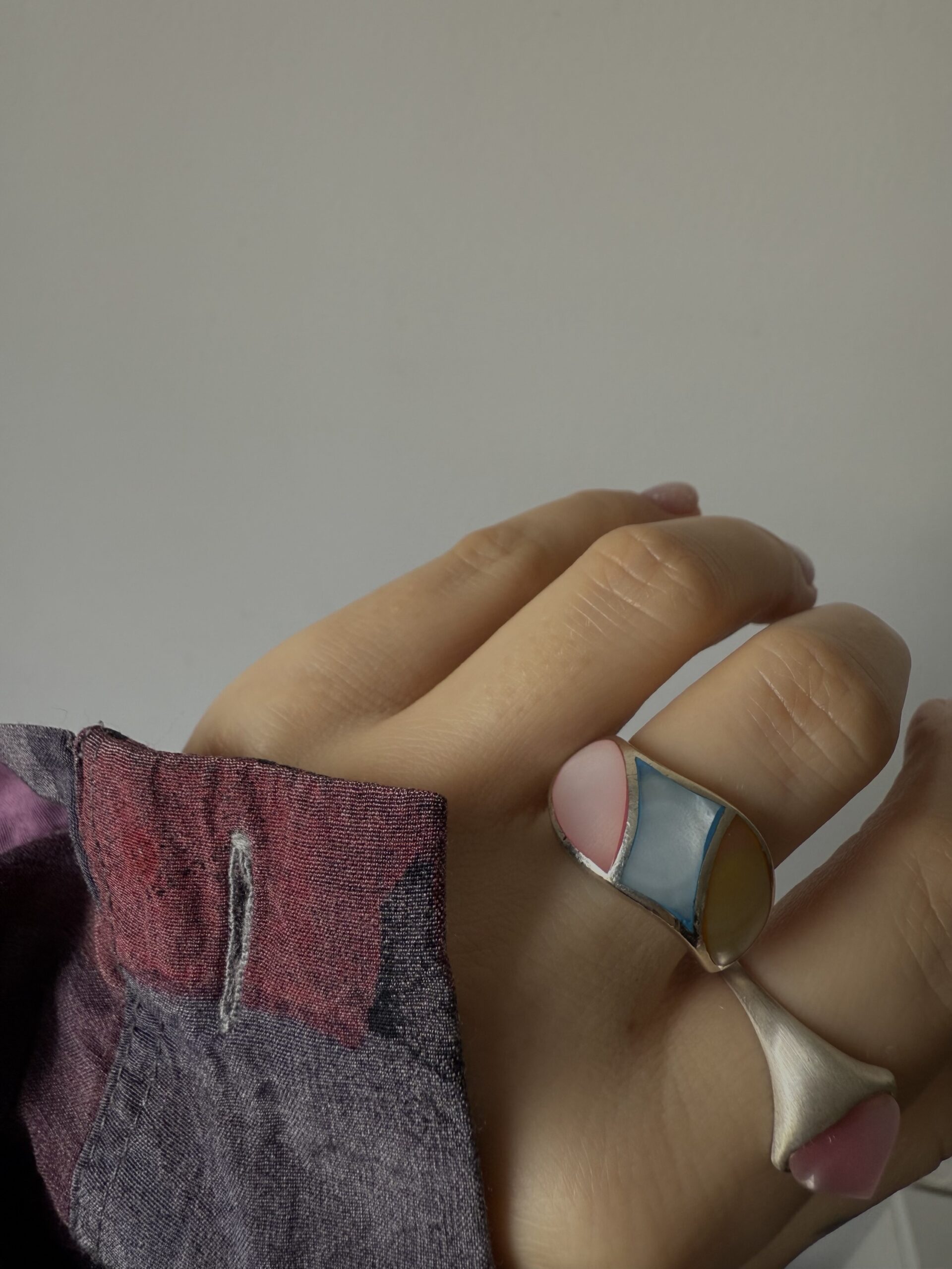 Masywny pierścionek z pastelową ozdobną emalią.