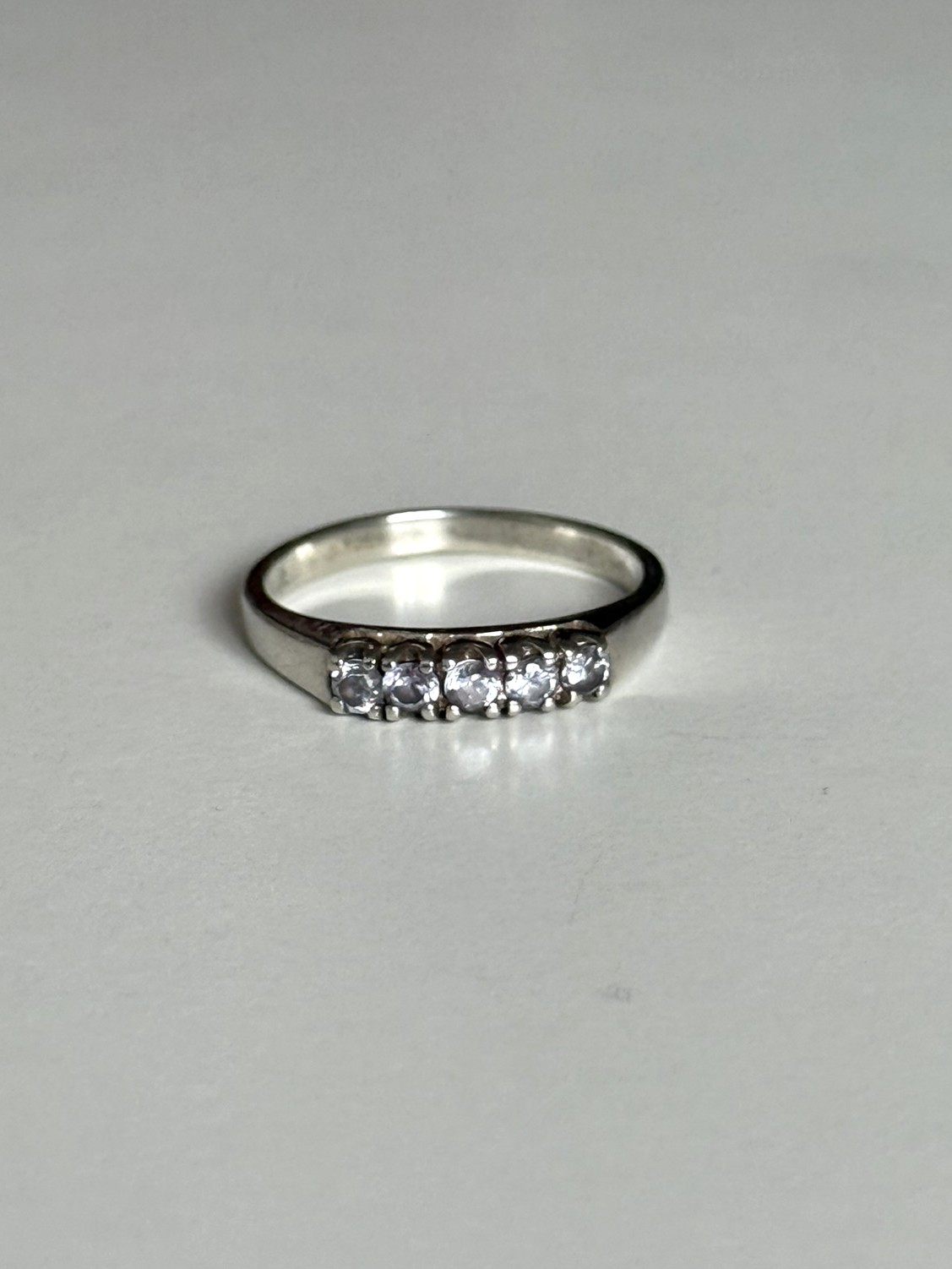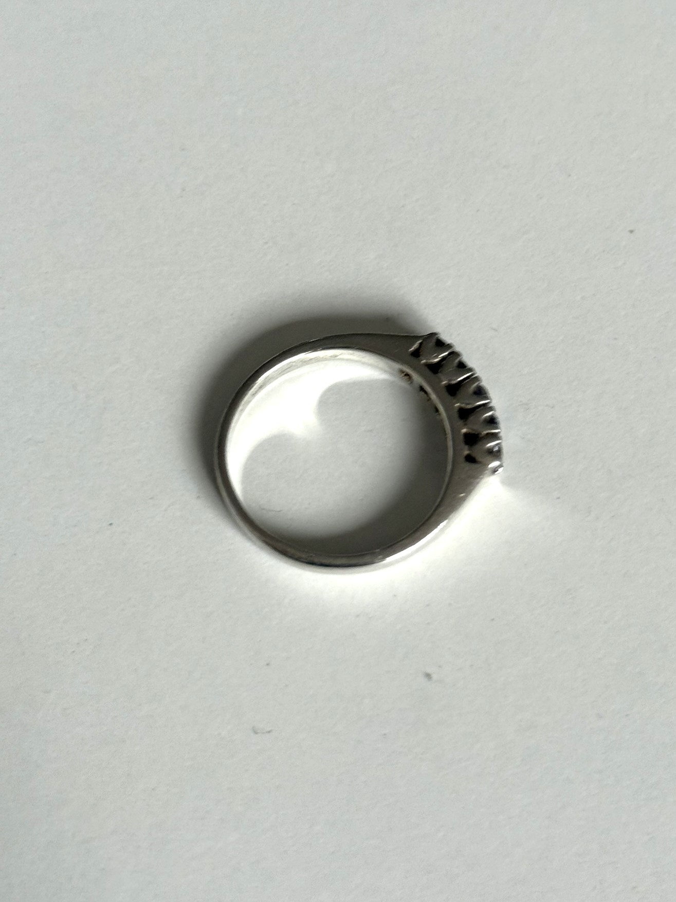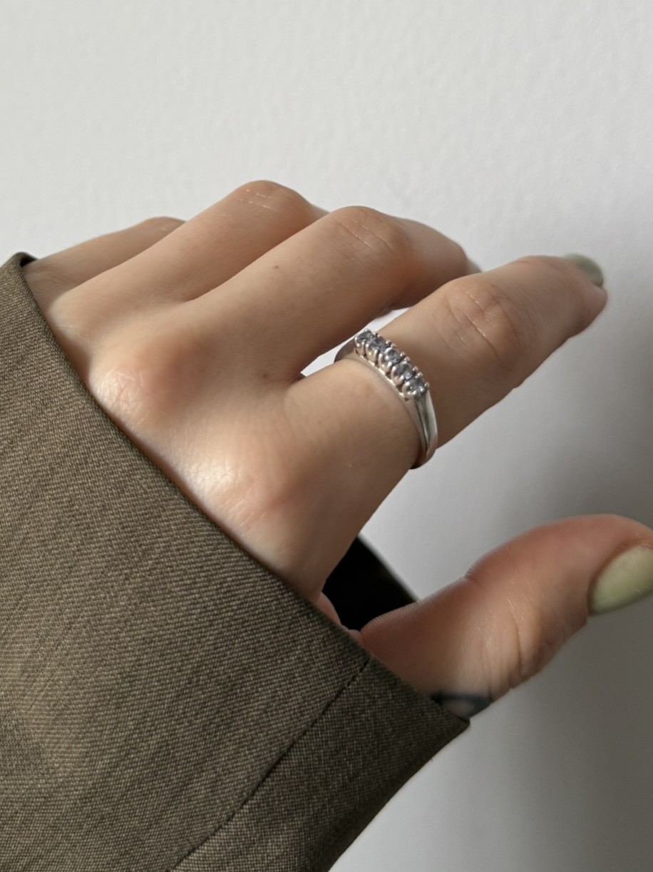 Pierścionek vintage ze srebra zdobiony cyrkoniami.