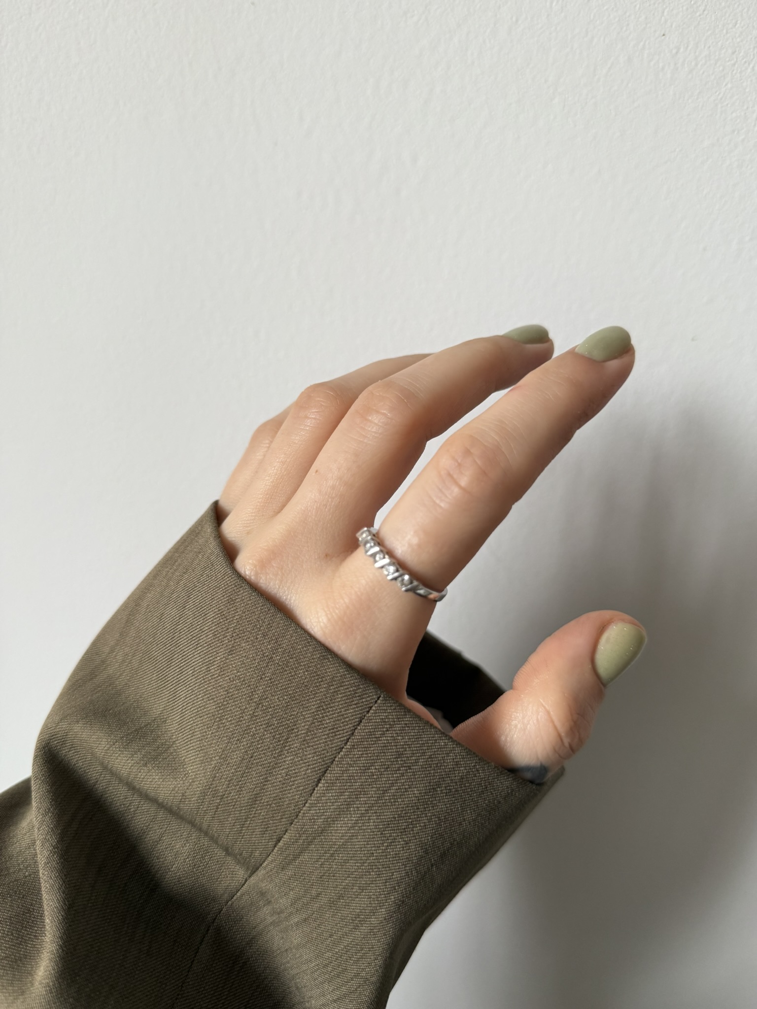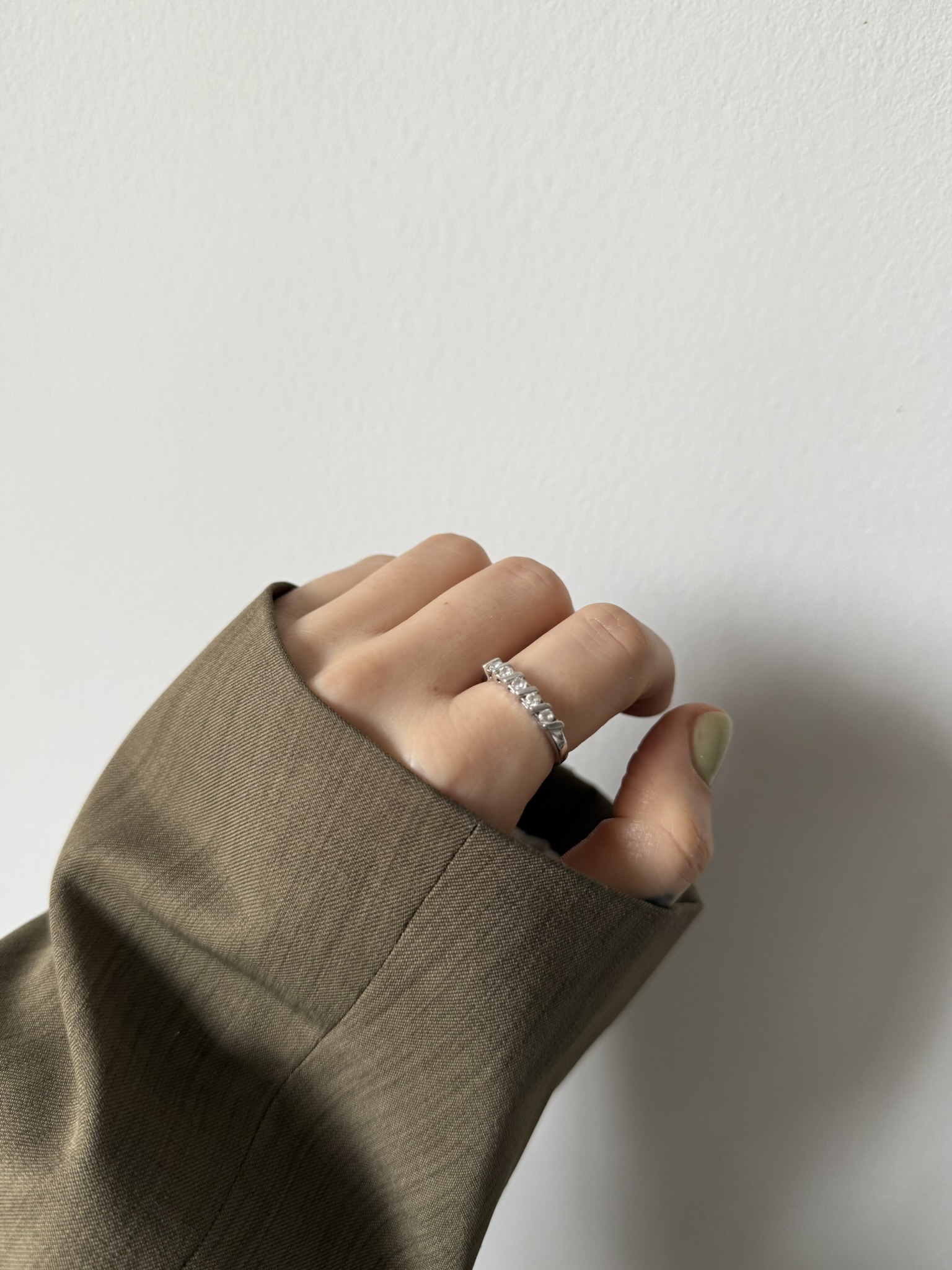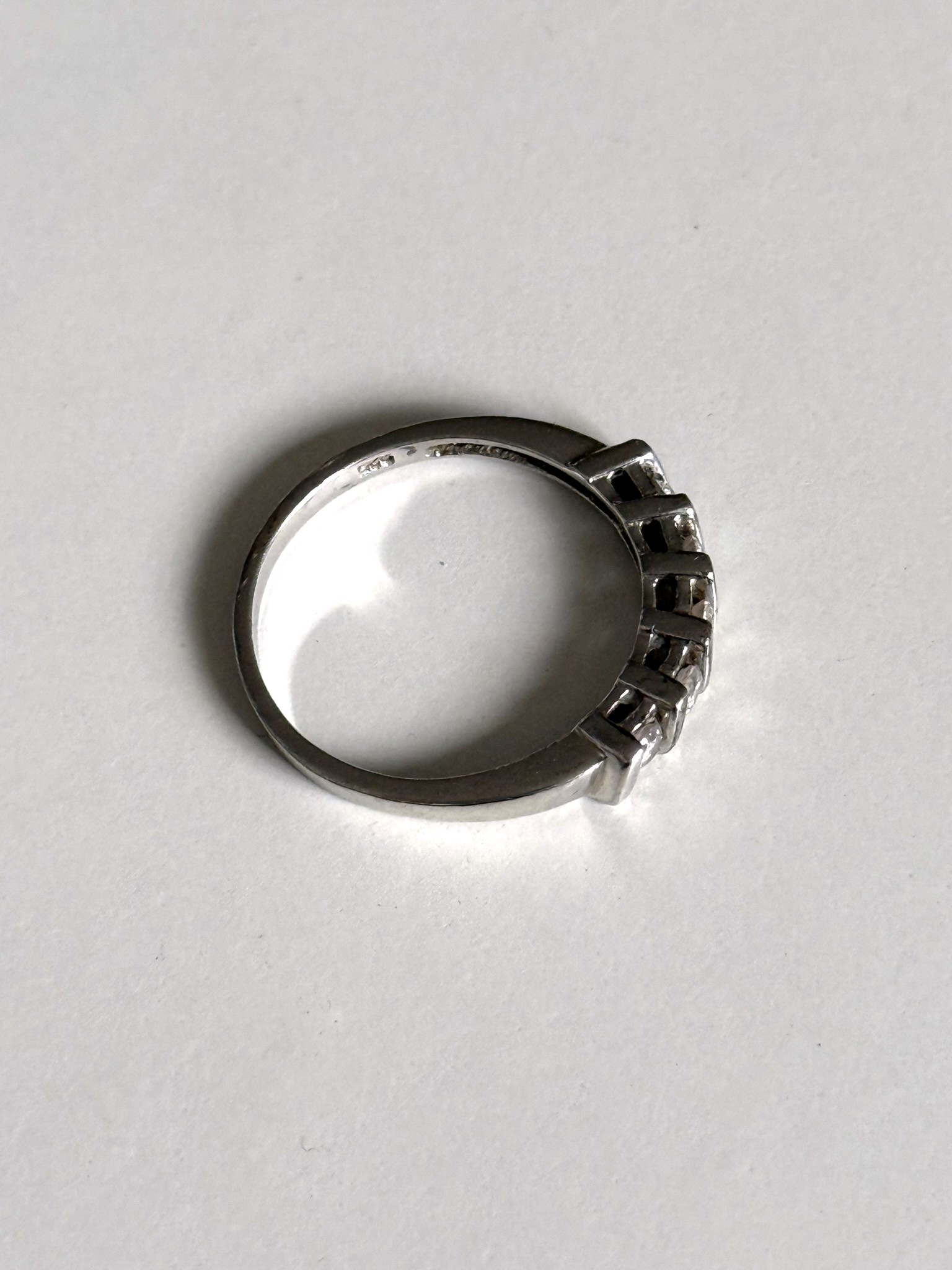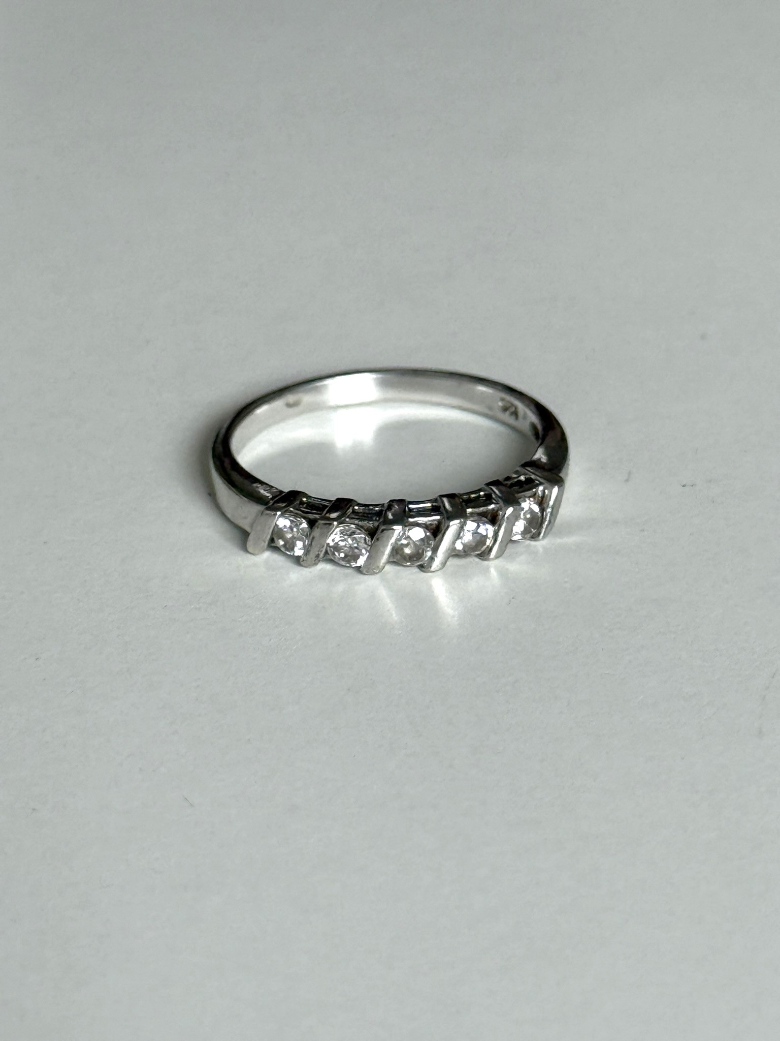 Pierścionek vintage ze srebra zdobiony cyrkoniami.